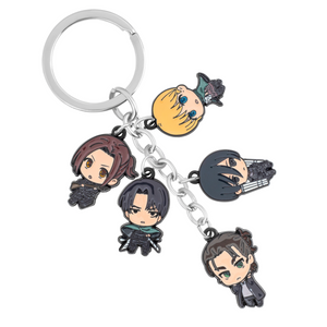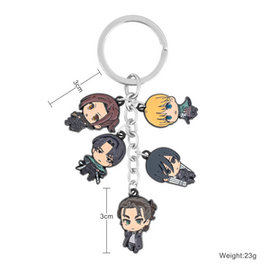 Honor the epic and emotional journey of Attack on Titan with this keychain featuring small charms of Sasha, Levi, Eren, Mikasa, and Armin from the later parts of the series. Each charm captures the essence of these beloved characters as they face the darkest moments of their struggle—Sasha’s bravery, Levi’s relentless resolve, Eren’s complex transformation, Mikasa’s fierce dedication, and Armin’s enduring hope.