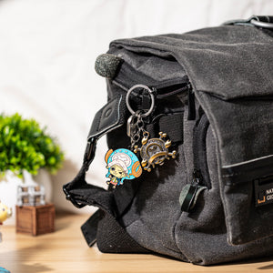 Celebrate Tony Tony Chopper's bravery with this keychain, featuring him standing in a determined battle stance, ready to defend his friends. Paired with a charming miniaturized version of his signature hat, this keychain captures the courage and cuteness of the Straw Hat crew’s beloved doctor. Perfect for One Piece fans who adore Chopper’s heart and strength, this accessory is a delightful tribute to his unforgettable character.