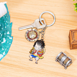 Gear up for adventure with this keychain featuring Luffy standing in a fierce battle stance, ready to take on any challenge. Paired with a charming Straw Hat charm, this design captures the fearless spirit and unbreakable resolve of the future Pirate King. Perfect for One Piece fans who admire Luffy's tenacity and love for his crew, this keychain is a dynamic tribute to his legendary journey.