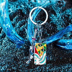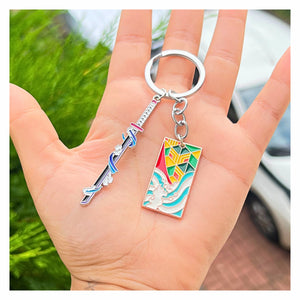 Embody the calm strength of Giyu Tomioka with this keychain featuring his iconic Nichirin blade and a charm reflecting his distinct colors and theme. The charm captures the serene yet powerful essence of Giyu, with hues that mirror his stoic nature and unwavering resolve.