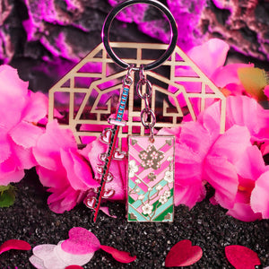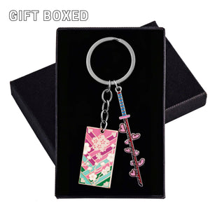 Celebrate the elegance and strength of Mitsuri Kanroji with this keychain featuring her iconic Nichirin blade and a charm that beautifully reflects her unique colors and theme. The charm captures the soft yet powerful essence of Mitsuri, with hues that represent her loving and compassionate nature as the Love Hashira.