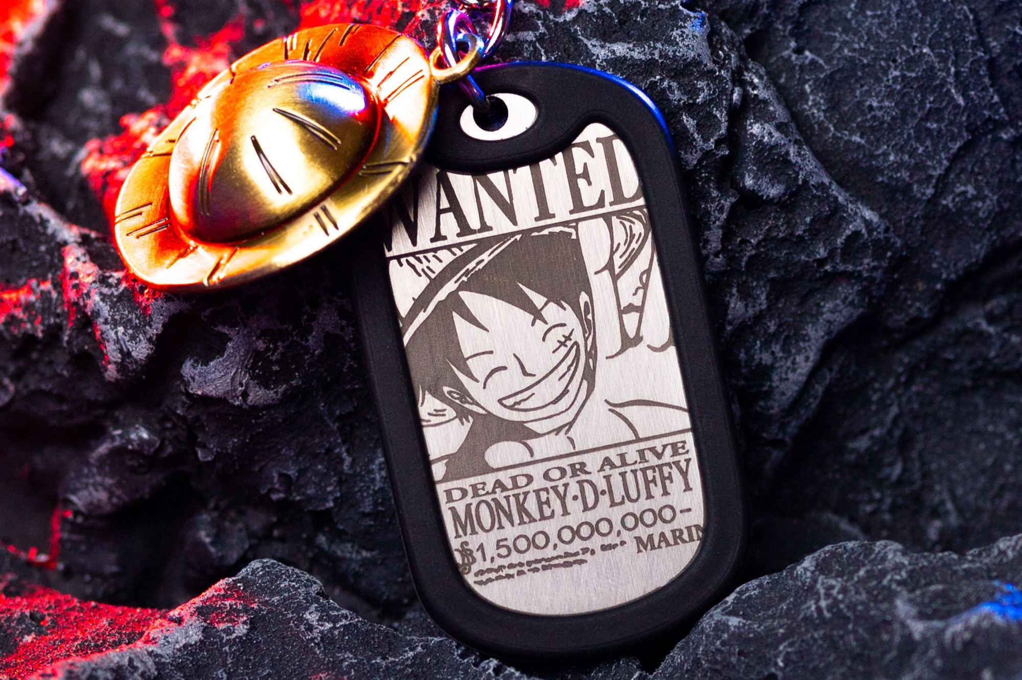 Celebrate Monkey D. Luffy’s epic saga with a design that honors his 1.5 billion & 300 million bounties. Etched onto a sleek metal dog tag with the iconic Straw Hat charm.