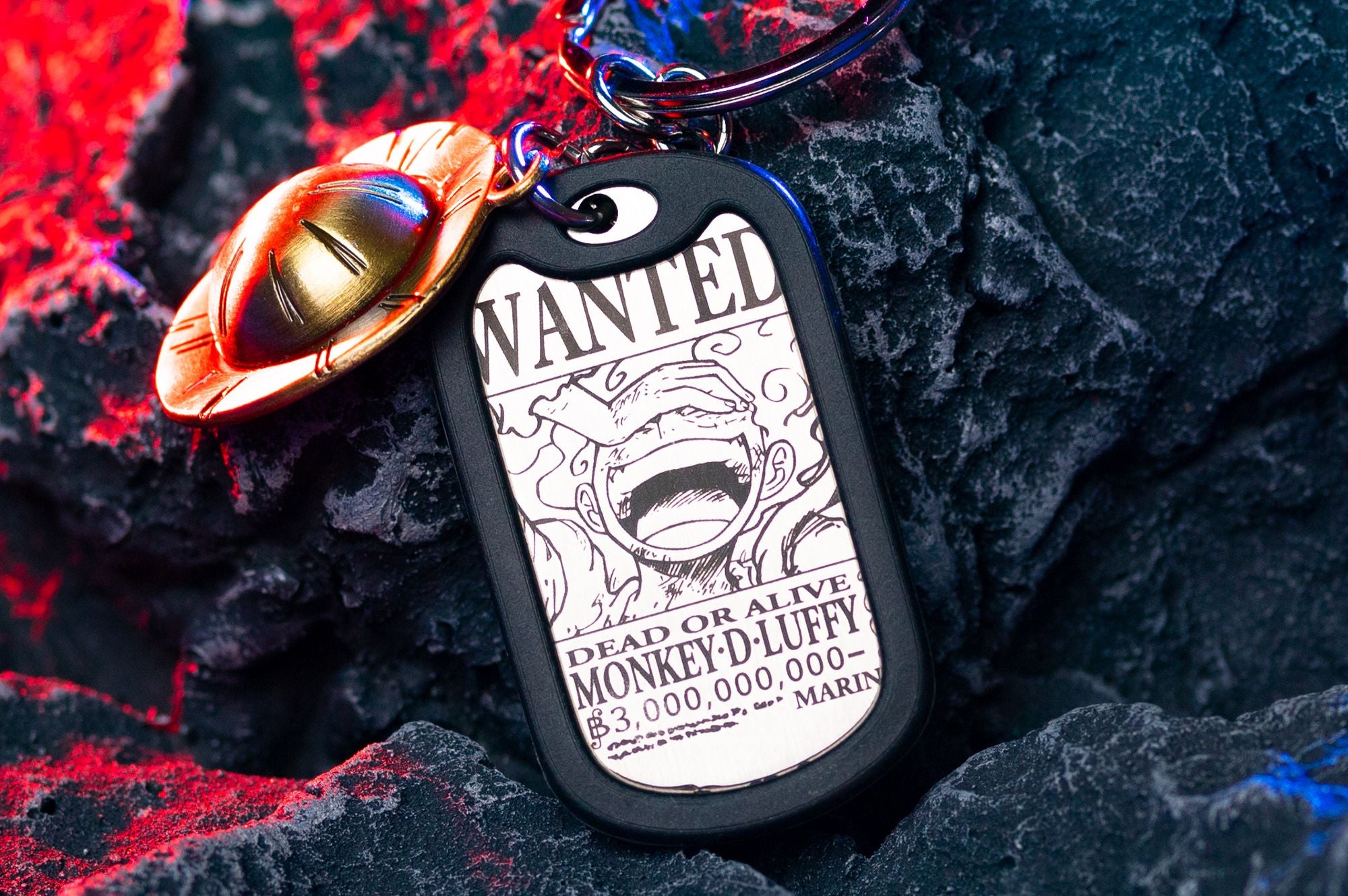 Capturing Monkey D. Luffy's impressive 3 billion bounty in Gear 5 form, precision etching adorns a sleek metal dog tag, highlighted by the iconic Straw Hat charm.