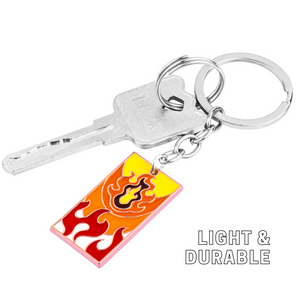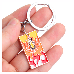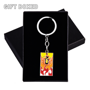 elebrate the essence of Kyojuro Rengoku with this keychain featuring his Hanafuda-style charm. This charm encapsulates the blazing energy and courage of the Flame Hashira, symbolizing his commitment to justice and his unbreakable spirit.