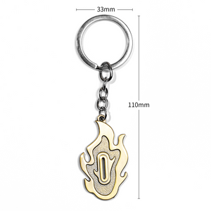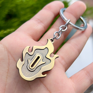 Honor the legacy of Kyojuro Rengoku with this keychain featuring a detailed representation of the hilt from the sword passed down to Tanjiro. This design captures the distinctive and symbolic elements of Rengoku’s weapon, reflecting the Flame Hashira’s unwavering spirit and the responsibility he entrusted to Tanjiro.