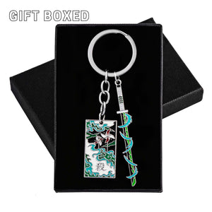 Embrace the fierce and unyielding spirit of Sanemi Shinazugawa with this keychain featuring his distinctive Nichirin blade alongside a Hanafuda-style charm that captures his intense colors and wind-themed design. The charm reflects Sanemi’s wild and untamed nature, blending his sharp, cutting power with the turbulent force of the wind.