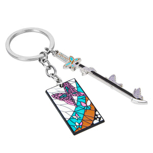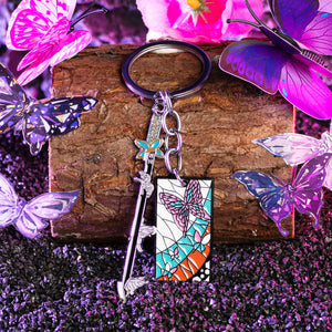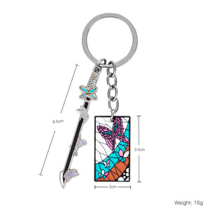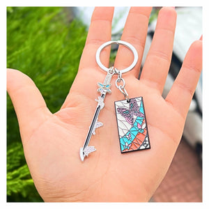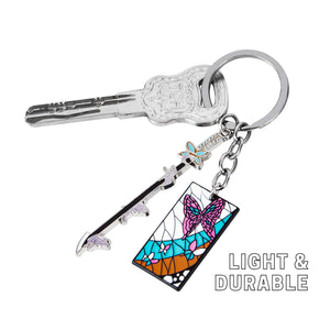 Capture the delicate yet deadly elegance of Shinobu Kocho with this keychain featuring her iconic Nichirin blade and a Hanafuda-style charm that embodies her soothing colors and butterfly-inspired theme. The charm reflects Shinobu’s grace and precision, combining the beauty of her gentle demeanor with the lethal power she wields as the Insect Hashira.
