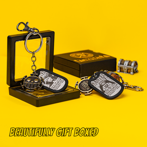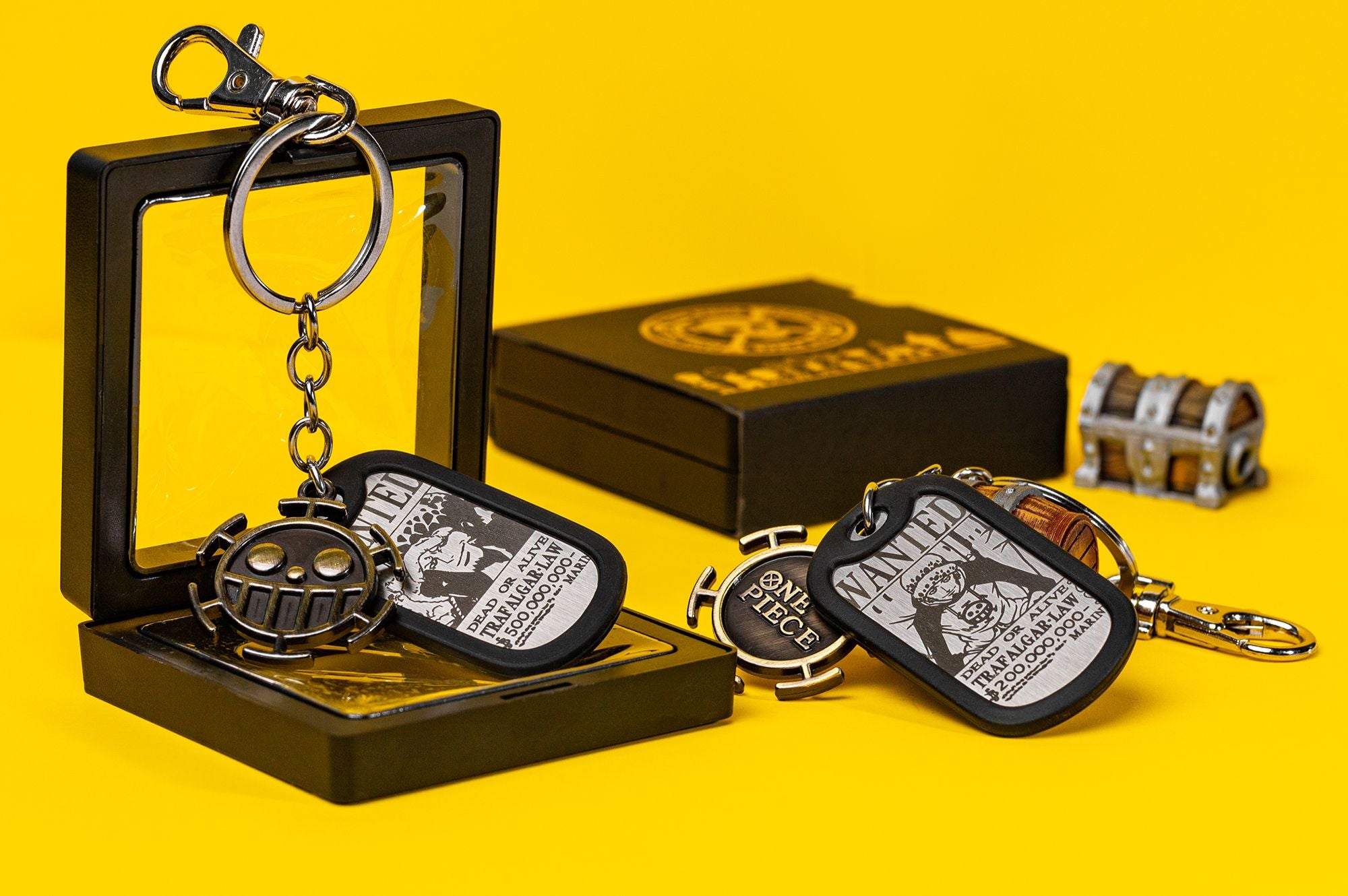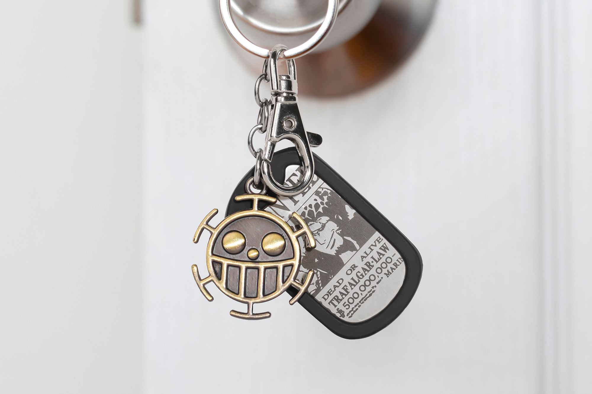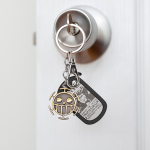 Immerse yourself in Trafalgar Law's cool presence with his bounty of 500 million & 200 million. Etched into a sleek metal dog tag, this piece is accented with Law’s Jolly Roger....