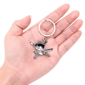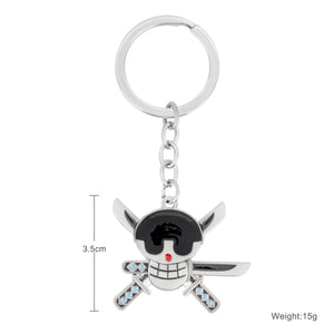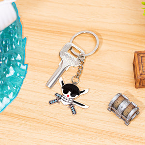 Embody the strength and honor of Roronoa Zoro with this keychain featuring his Jolly Roger. The emblem, featuring a skull with three swords crossed behind it, represents Zoro’s ambition to become the world’s greatest swordsman. It’s the perfect accessory for fans who admire Zoro’s unwavering determination, loyalty, and unmatched swordsmanship.
